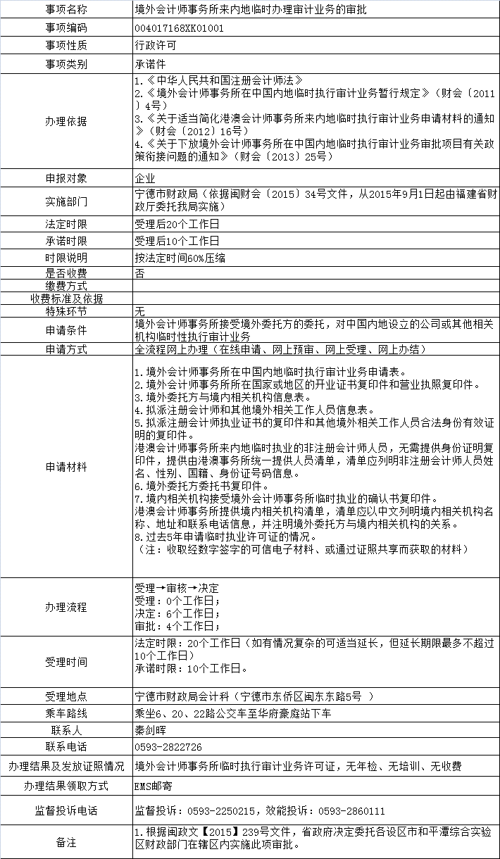 境外会计师事务所来内地临时办理审计业务的审批办事指南